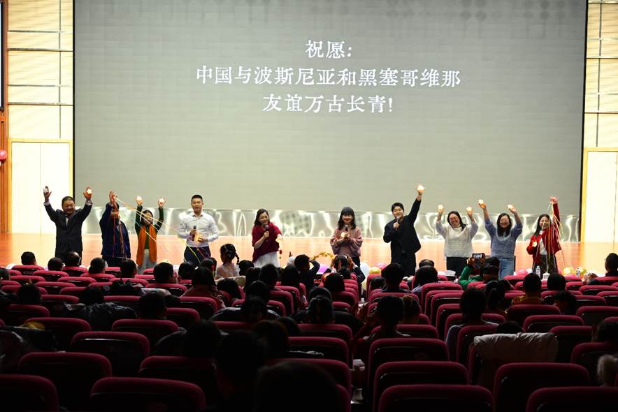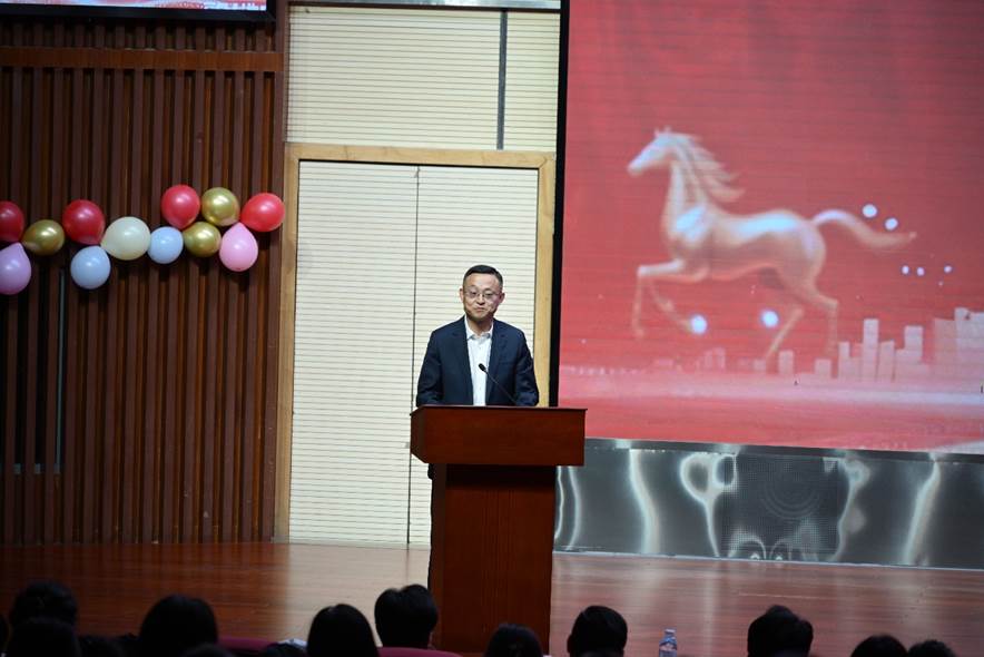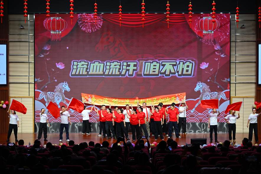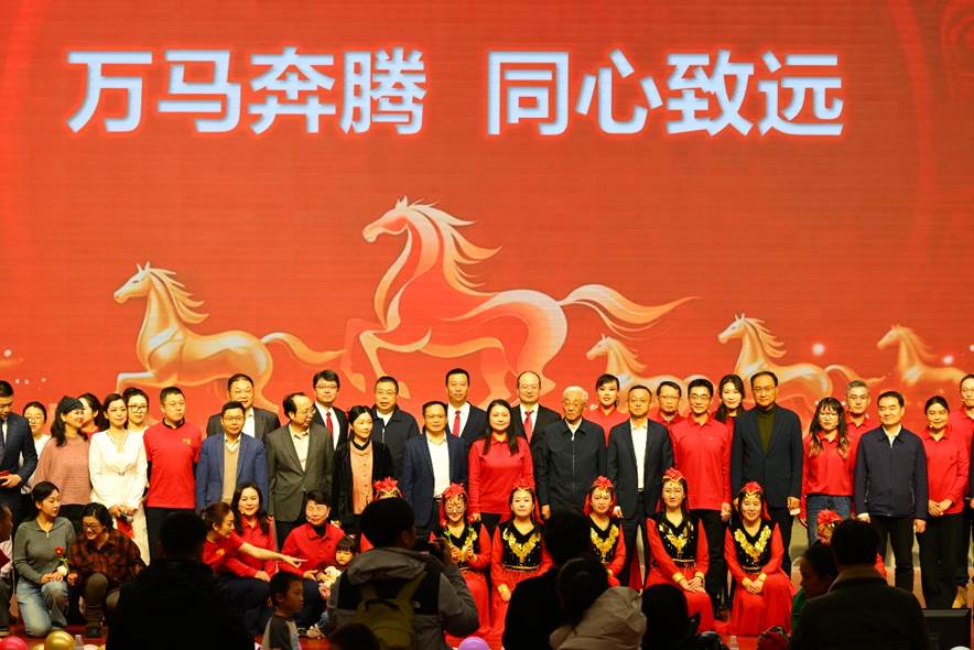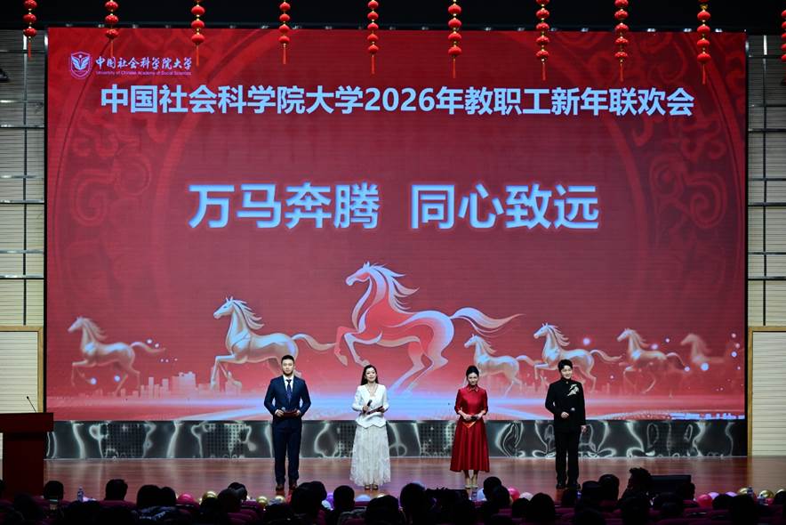 日月其迈,岁律更新。1月23日下午,中国社会科学院大学良乡校区行政楼140报告厅内,灯光如昼,暖意袭人。学校全体校领导与近650余名教职工、家属及退休老同志欢聚一堂,共同见证并参与了“万马奔腾 同心致远”2026年教职工新年联欢会。