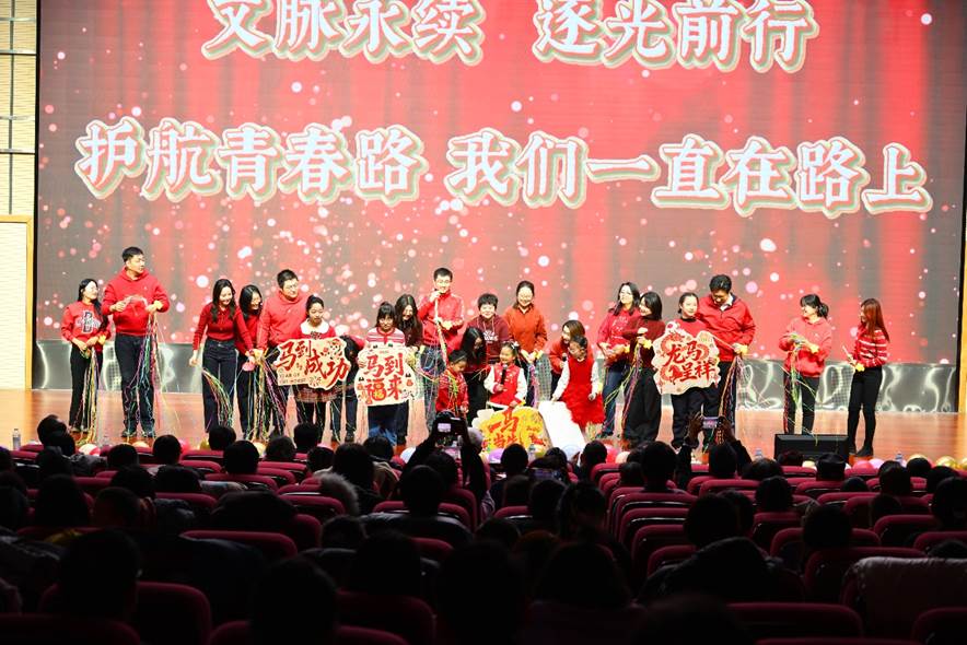 演出间隙,“欢乐猜谜”与“幸运抽奖”环节更是将现场气氛推向了沸点。谜题巧妙融合了校史校情与时代元素,既考验了智慧,又增添了乐趣;抽奖时刻,惊喜连连,笑声、欢呼声此起彼伏,将现场化作了一片欢乐的海洋。教职工们携家人积极参与,特别是小朋友们的嬉戏欢笑,更是为这场联欢会增添了几分童真与欢乐。